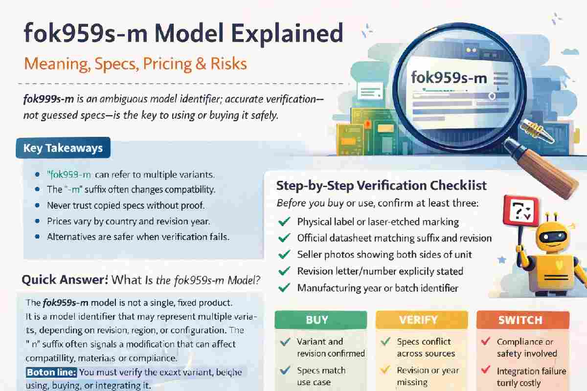 Many people encounter “fok959s-m” on marketplaces, invoices, or repair notes and assume it’s a single, fixed product. That assumption causes mismatches, returns, and integration failures. The fix is simple: verify the exact variant first, then compare specs and prices.